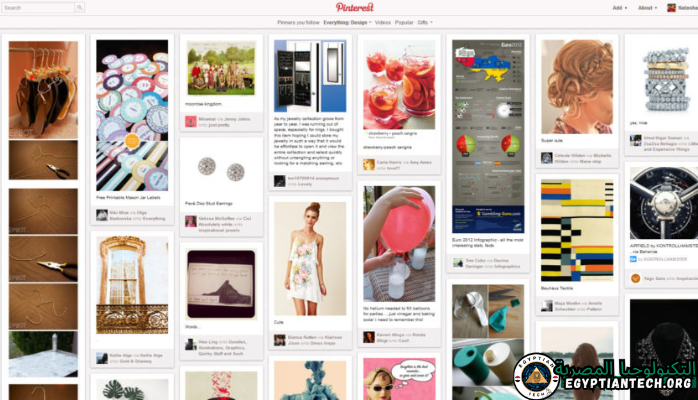 بعد فتح الموقع نقوم بإدخال البريد الإلكتروني الشخصي وكلمة المرور بالإضافة إلى العمر. يمكننا أيضًا التسجيل من خلال حسابك على Facebook أو حساب Gmail. بعد الانتهاء، ستقوم بتعيين بعض خيارات التخصيص للواجهة الخاصة بك والمعلومات العامة حول الحساب من أجل تسجيل الدخول بشكل شرعي. ستظهر نافذة أيضًا. تحديد الاهتمامات، حيث يمكنك تحديد العديد من الاهتمامات التي ستظهر على نافذتك الرئيسية لإعادة تثبيتها على لوحاتك.بالإضافة إلى ذلك، يمكنك تسجيل حساب شخصي أو حساب أعمال على Pinterest، وكلا النوعين مجانيان بالكامل، ولكن الفرق بينهما هو الإحصائيات المقدمة للحساب التجاري والتي لا توجد في الحساب الشخصي.بعد الدخول ستكون واجهة Pinterest بهذا الشكل.وبالنظر إلى النافذة الرئيسية سنجد الأمر من اليمين إلى اليسار كما يلي: