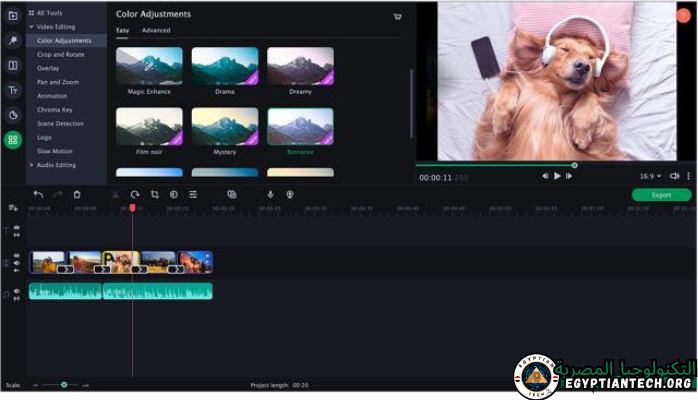 يتيح لك هذا البرنامج الرائع عمل فيديو احترافي من الصور مع التعديل على الصور من حيث التحكم في الألوان ودرجة التباين والسطوع في الصورة وتشبع اللون لتصحيح أي عيوب في صورك قبل عمل الفيديو النهائي. ويمكنك أيضًا من خلال برنامج Movavi Slideshow Maker Portable إجراء تعديلات مهمة على الصور. صور لإنشاء فيديو رائع من شرائح الصور التي تحتوي على اللحظات المهمة والسعيدة في حياتك.