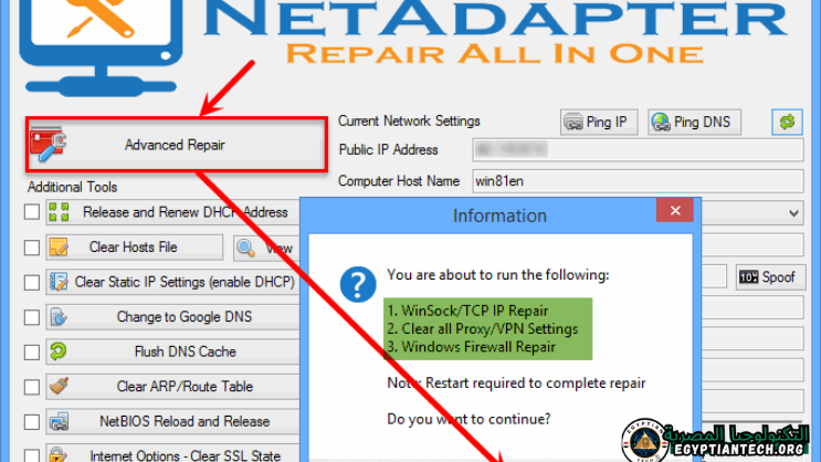 - 2 تحميل برنامج حل مشكلة عدم الاتصال بالانترنت للكمبيوتر NetAdapter Repair:
