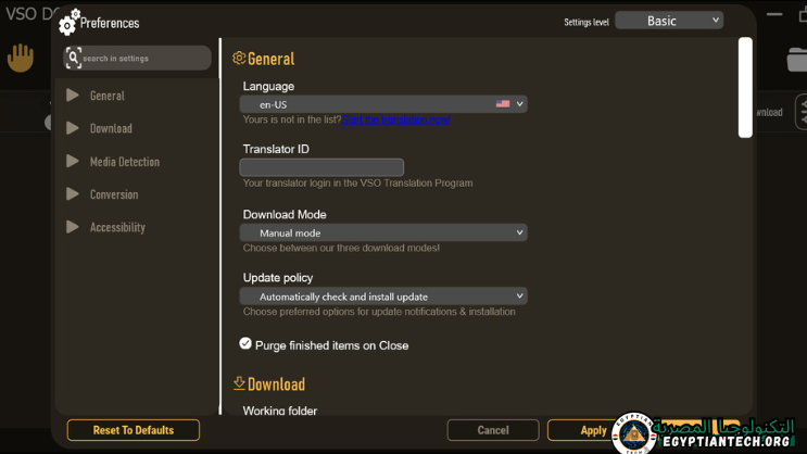 يتمتع VSO Downloader Ultimate بواجهة بسيطة ومميزة تجعل استخدام البرنامج أسهل وأكثر سلاسة في التعامل معه دون خبرة. كما يدعم تغيير لغة واجهة البرنامج إلى العديد من اللغات منها العربية والإنجليزية والفرنسية وغيرها من اللغات التي يدعمها البرنامج، حتى يسهل عليك استخدام البرنامج بلغتك المفضلة.